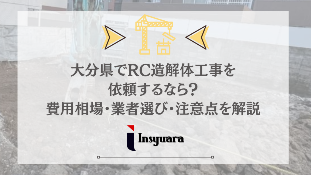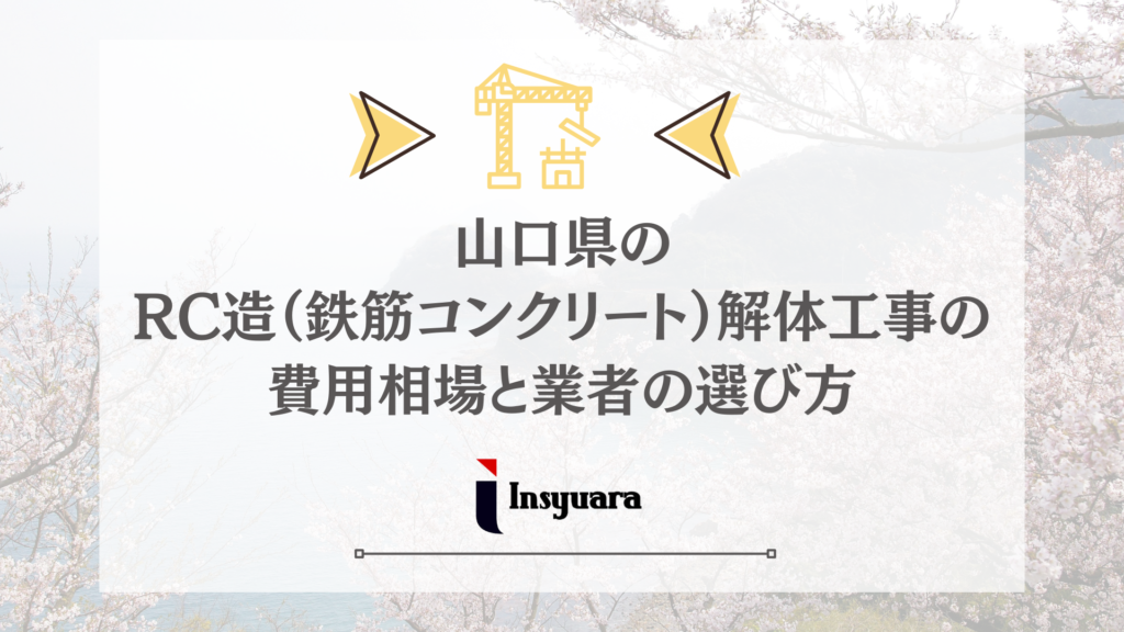 ㈱インシュアラ 代表取締役社長の金松です。RC造(鉄筋コンクリート造)の解体工事は、木造や鉄骨造に比べて費用が高額になりやすく、専門的な技術と大型重機が必要です。山口県でRC造の建物を解体したいとお考えの方に向けて、費用相場から解体の流れ、費... -