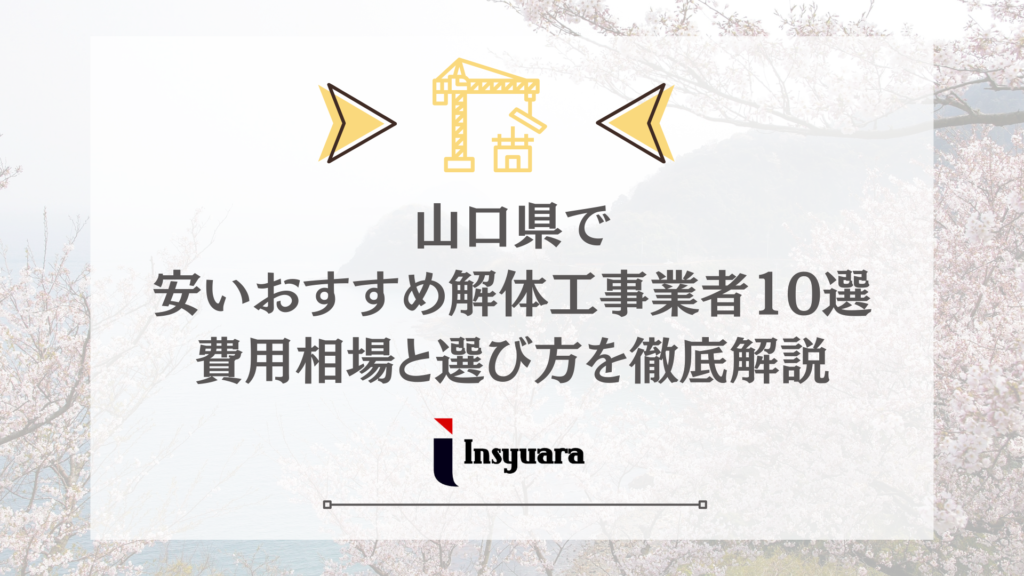 ㈱インシュアラ 代表取締役社長の金松です。解体工事業者として全国で100件以上の施工実績を持つ私が、山口県で解体工事を検討中の方に向けて、費用相場から優良業者の選び方まで徹底解説します。山口県は空き家率が全国平均を大きく上回っており、解体需... -