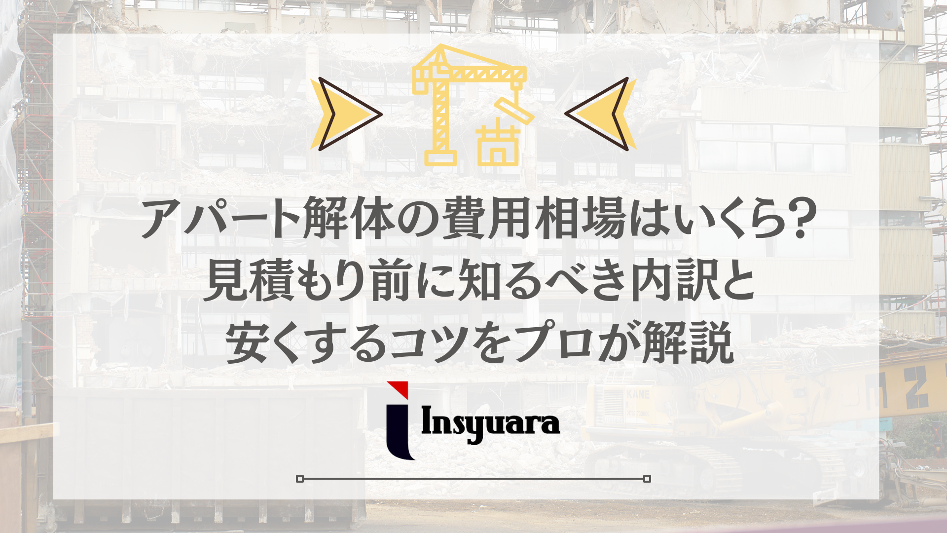 アパート解体を検討する際、最も不安なのは「適正価格が分からないこと」ではないでしょうか。提示された見積もりが高いのか安いのか、後から追加請求が来ないか、オーナー様の悩みは尽きません。本記事では、解体実績1000件以上を持つ㈱インシュアラの代表が、費用の算出ロジックから安く抑える裏技、業者選びの急所までを徹底解説します。根拠のない安さではなく、仕組みでコストを下げるプロの視点をお伝えします。