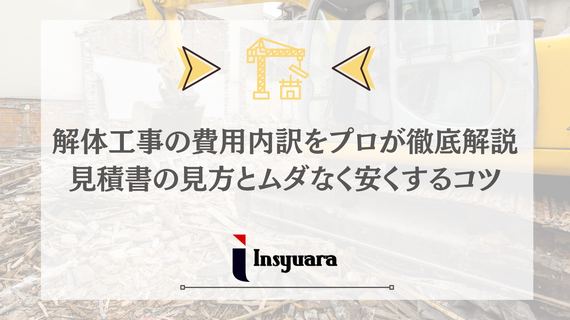 解体工事の見積もりを見て「総額が高いのか安いのか分からない」「追加費用が怖い」と不安を感じていませんか?費用内訳を正しく理解することは、適正価格を見極め、トラブルを回避するための最強の武器になります。この記事では、解体実績1000件以上を誇る㈱インシュアラが、見積書の正しい見方からコストを抑える裏技まで徹底解説します。