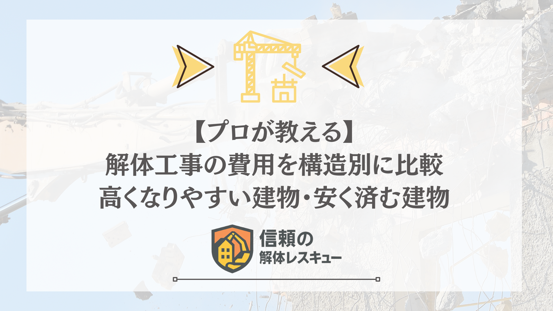 【プロが教える】解体工事の費用を構造別に比較|高くなりやすい建物・安く済む建物