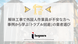 安さだけを追求して近隣トラブルを起こしては、元も子もありません。 適正な価格で、しっかりとした安全対策を行う業者を選ぶことが、結果として最もコストパフォーマンスの高い解体工事になります。 株式会社インシュアラは、お客様の「安く済ませたい」という思いと、「安全に終わらせたい」という願いの両方を叶えるパートナーです。 解体工事をご検討の際は、ぜひ㈱インシュアラにお声がけください。