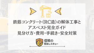 現在の法律では、建物の解体前に必ずアスベスト(石綿)の含有調査を行うことが義務付けられています。特にRC造では、外壁の塗装材(塗膜)や床のPタイル、天井の岩綿吸音板などにアスベストが含まれている可能性があります。調査の結果、アスベストが検出された場合は、法律に則った厳重な除去作業が必要となり、その対策費用が別途追加されます。これは安全に関わる最重要項目の一つです。
