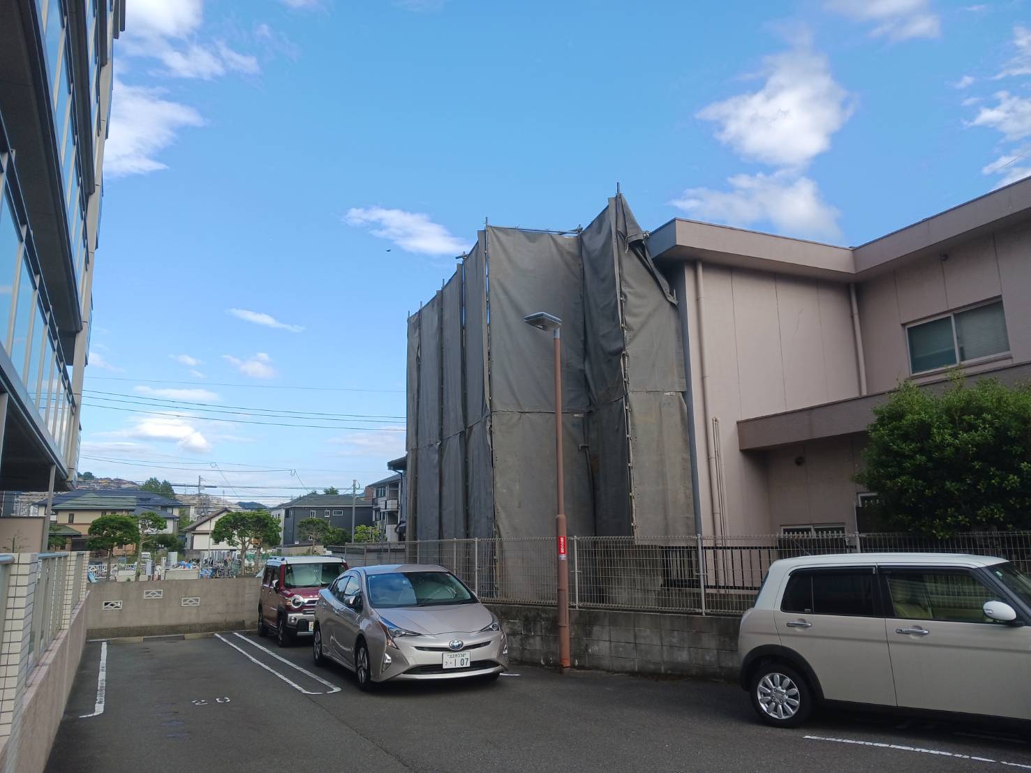 今回の現場も隣接建物が近かったため、
