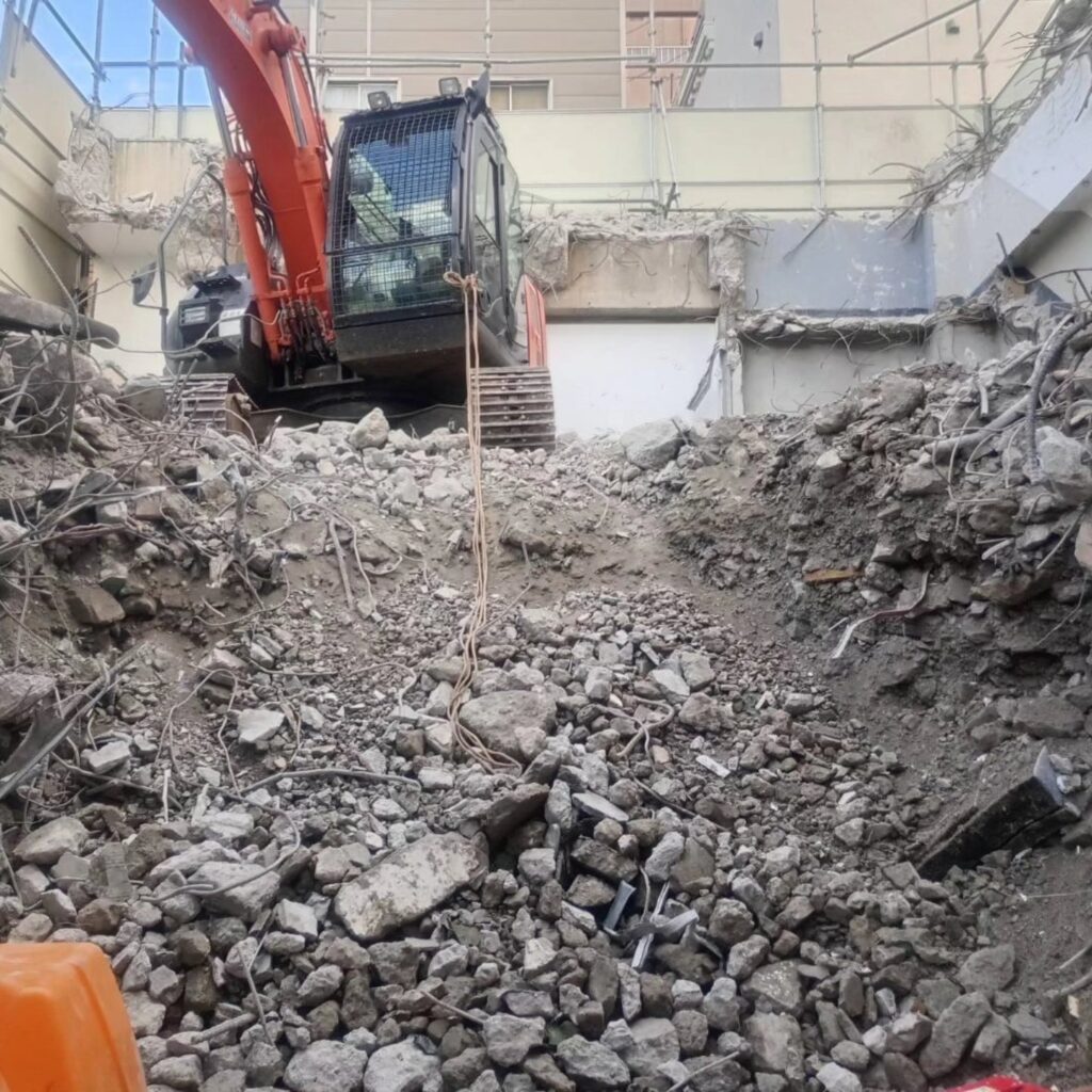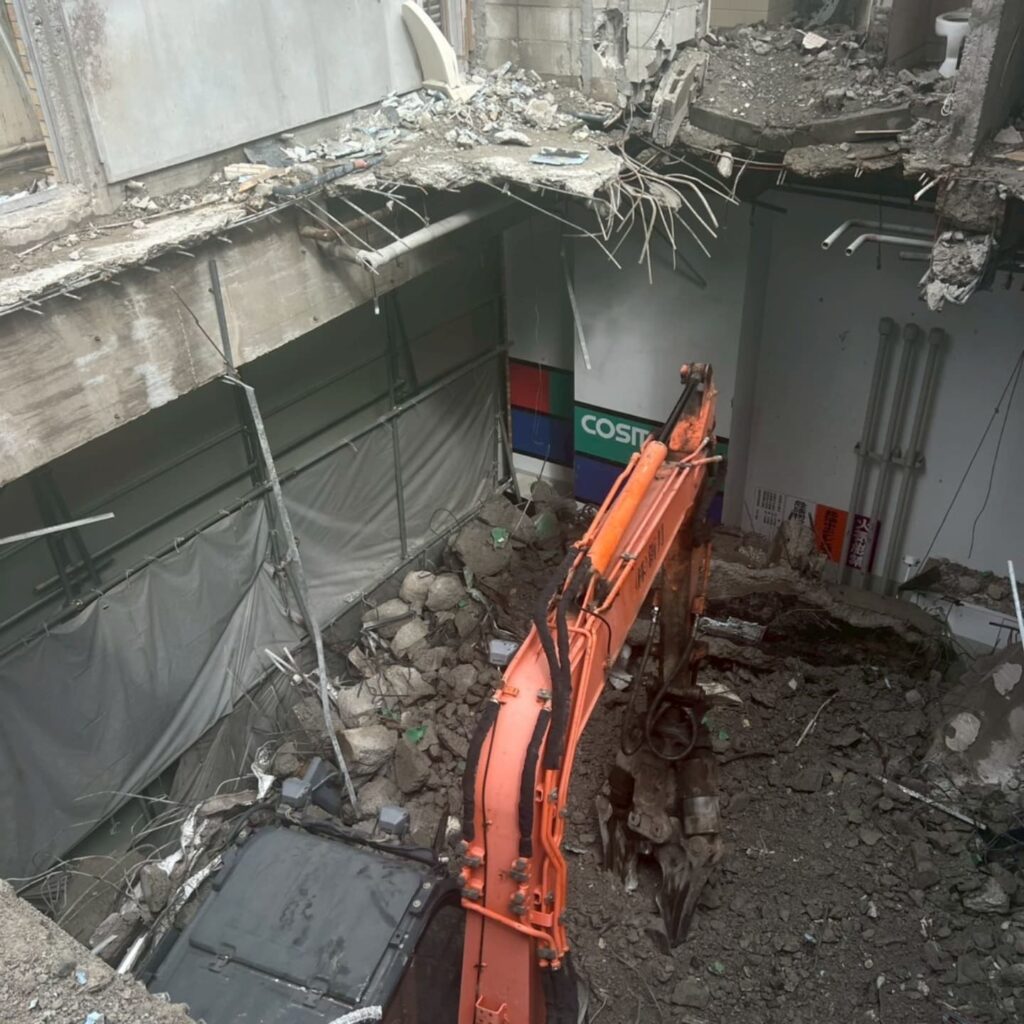 今回の実例では、屋上から4階へと段階的に進み、清掃も挟みながら安全に解体が進められています。