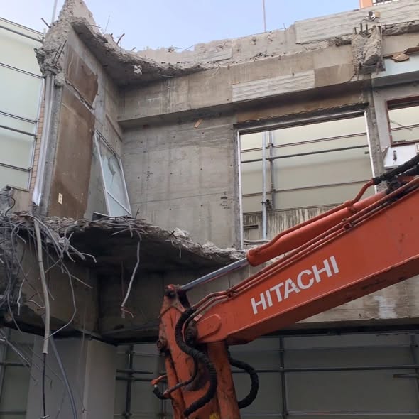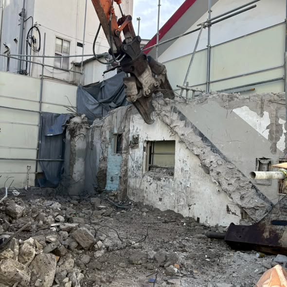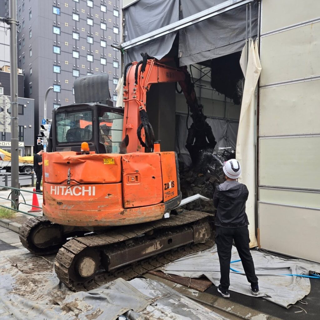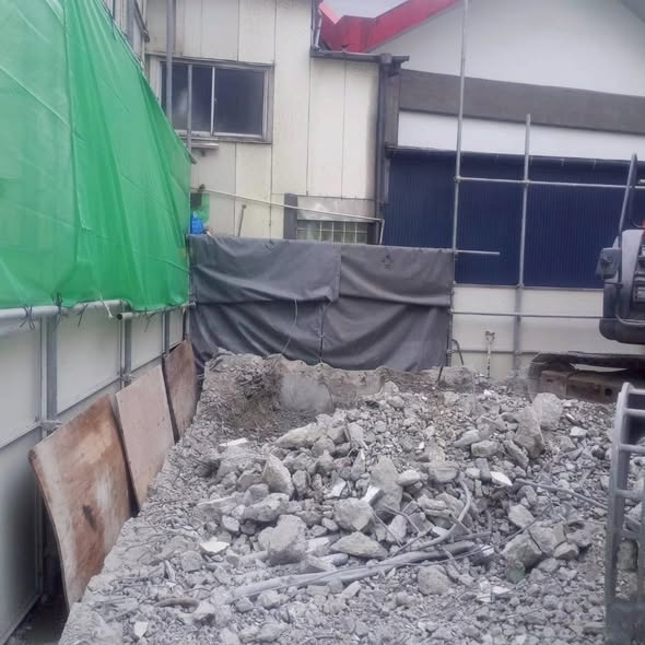 ここから解体スピードは上がりますが、飛散・騒音も増えるため、養生の効きと散水運用がより重要になります。