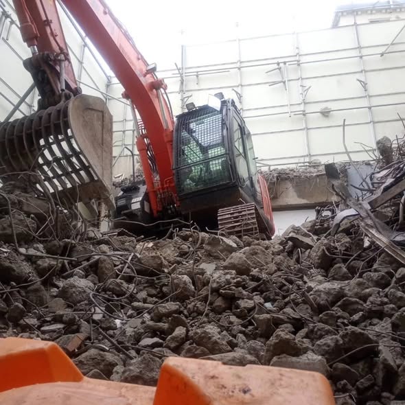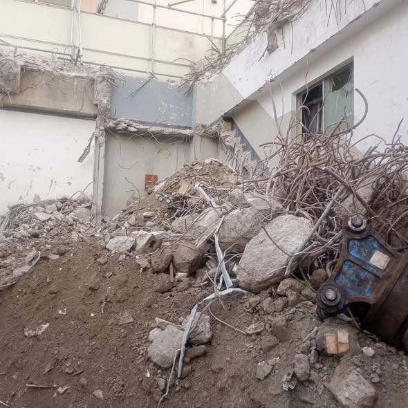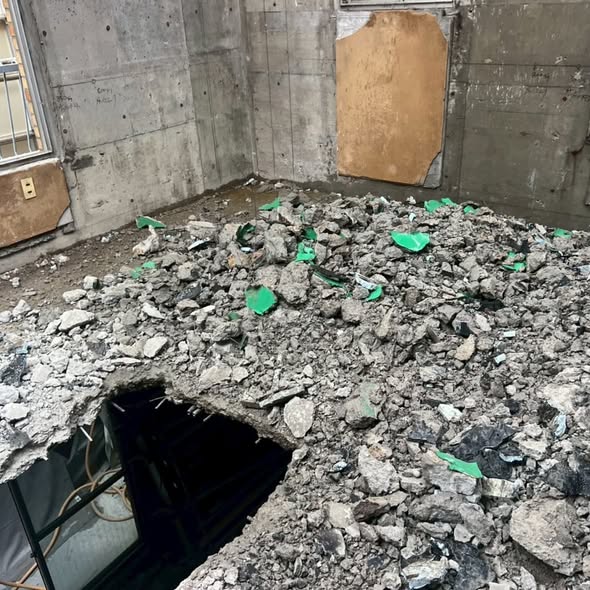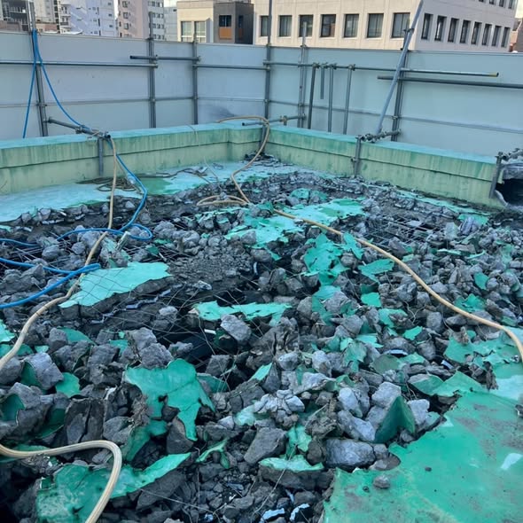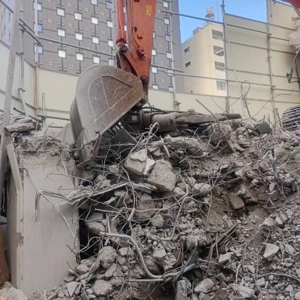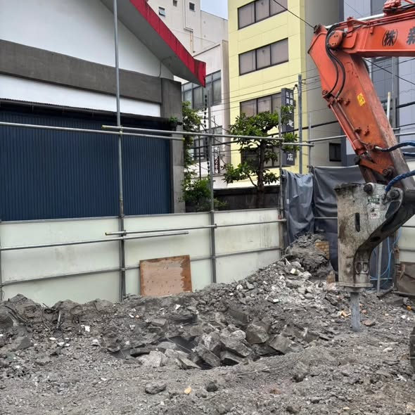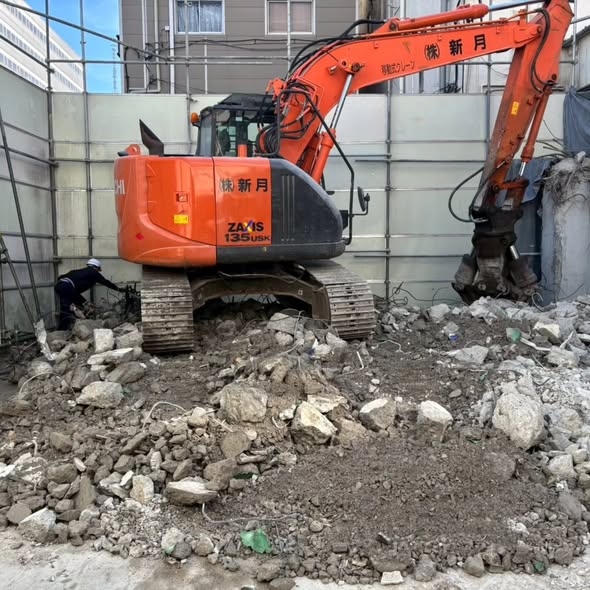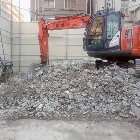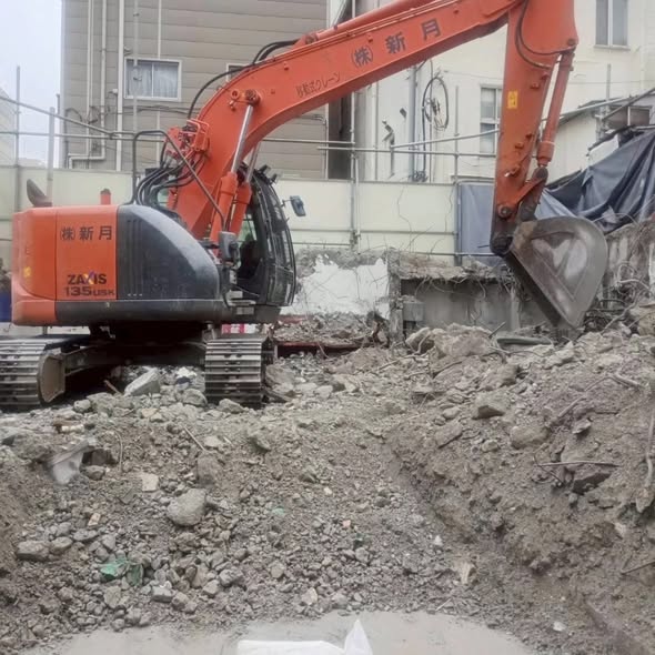| 上部躯体解体(手元中心) | 5〜17日目 | 上階・屋上から順に安全に解体 | 屋上はつり、鉄筋メッシュ切断、壁倒し、4階壁解体 |