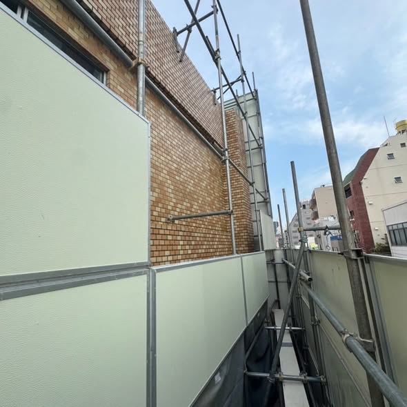 高所作業の安全確保はもちろん、落下物・飛散物を抑える土台にもなります。ガソリンスタンドは道路沿いに立地することが多く、第三者災害を防ぐためにも、足場とシートの精度が工事品質を左右します。