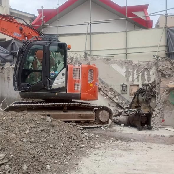 | 小割・壁・土間(仕上げ解体) | 33〜38日目 | 搬出しやすいサイズへ、地盤面まで撤去 | 小割、壁解体、土間ブレーカー |