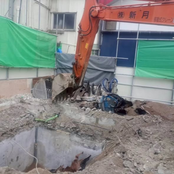 下に配管・ピットがある場合は破砕深さの管理が重要です。