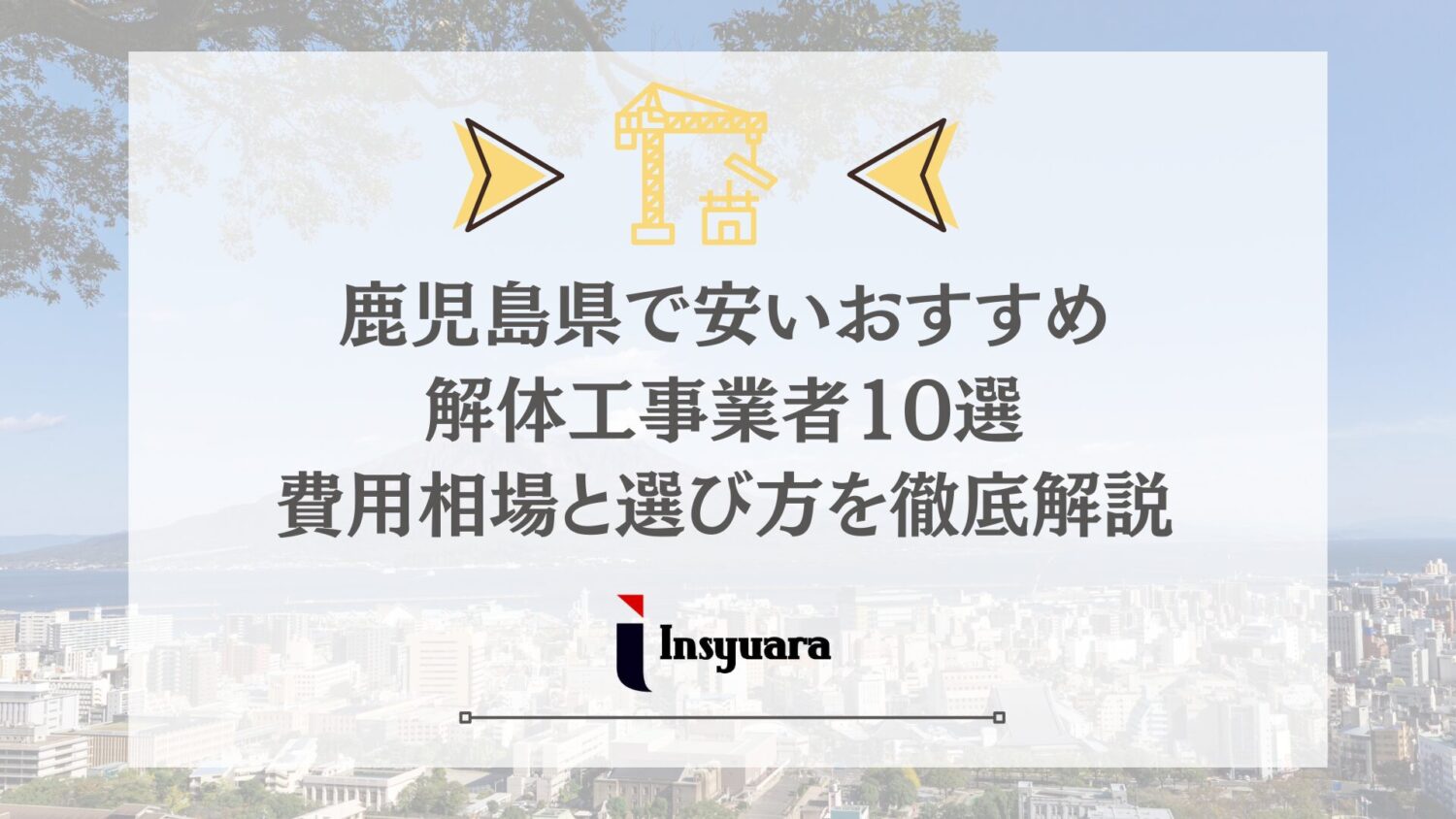 ㈱インシュアラ代表取締役社長 金松裕基解体工事業者として全国で1,000件以上の施工実績を持つ私が、鹿児島県で解体工事を検討中の方に向けて、費用相場から優良業者の選び方まで徹底解説します。鹿児島県は空き家率12.0%と全国平均の2倍以上。シラス地盤や桜島の降灰といった全国でも珍しい環境条件が解体工事にも影響します。この記事を読めば、鹿児島ならではの事情を踏まえて適正価格で安心して任せられる業者が見つかります。