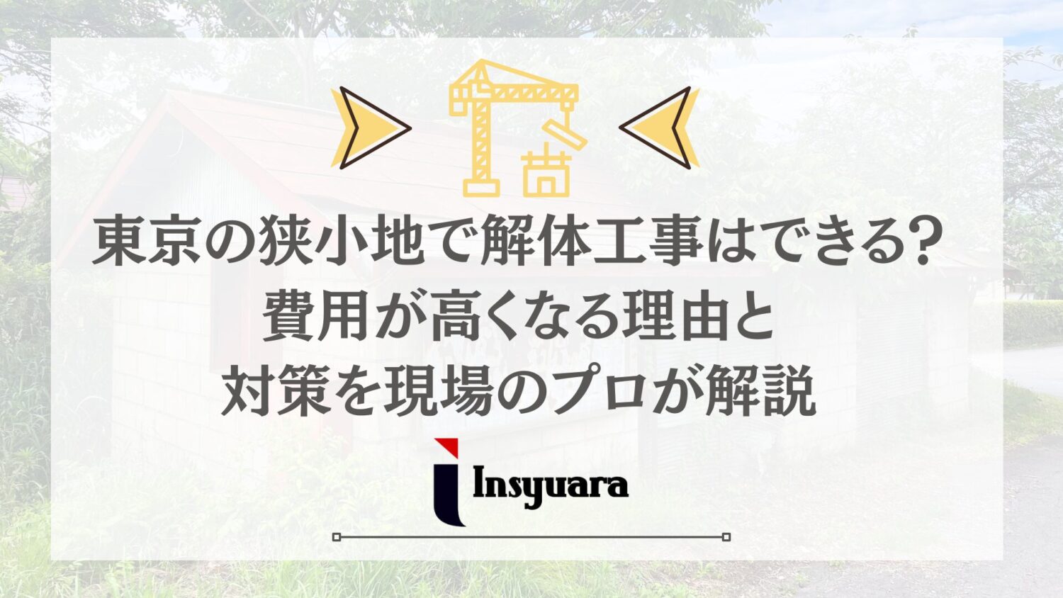 この記事では、解体工事の実績1,000件以上を持つ株式会社インシュアラが、東京の狭小地で解体費用が高くなる理由や使われる工法、近隣トラブルを防ぐコツ、そして解体後の土地活用まで、現場の経験をもとにお伝えします。